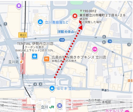 JR立川駅北口から徒歩3〜4分、洋服の青山 立川北口店の近く