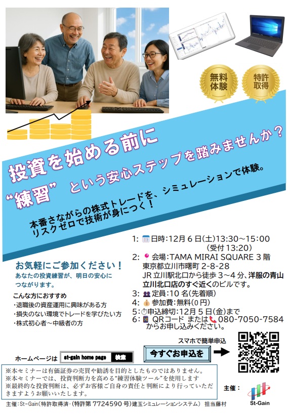 初心者でも安心! “損失ゼロ”で株トレード技術を学べる実践型セミナー